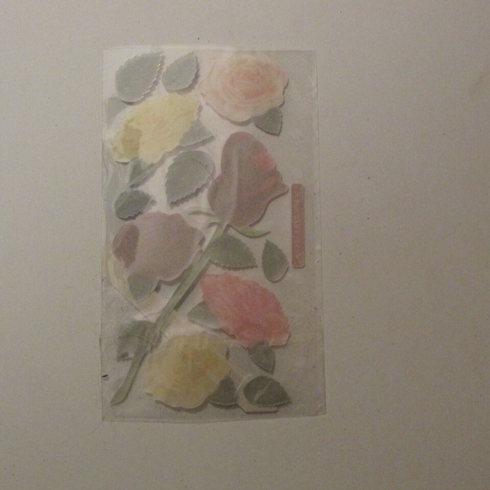 STICKOPOTAMUS VELLUM STICKERS 4x7" sheet of 6 roses red pink yellow (sew cabF)