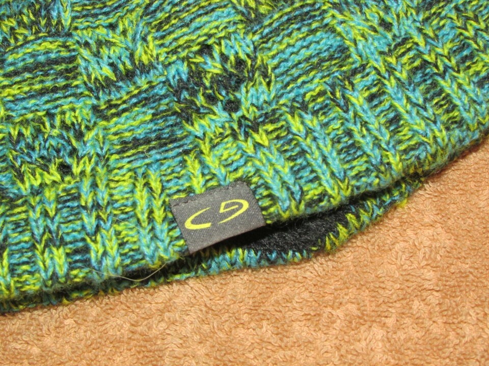 Champion BEANIE knit lined hat green-blues yarn black soft lining (cloth bx 2)