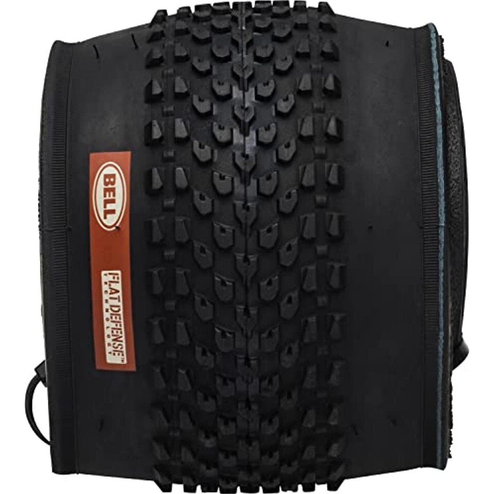 Bell flat Defense technology provides a protective layer with increased strength and extra puncture resistance. Mountain bike tires feature a new, optimized tread pattern for your off-road adventures. A carbon steel BEAD allows the tire to be folded without damage for easy storage.