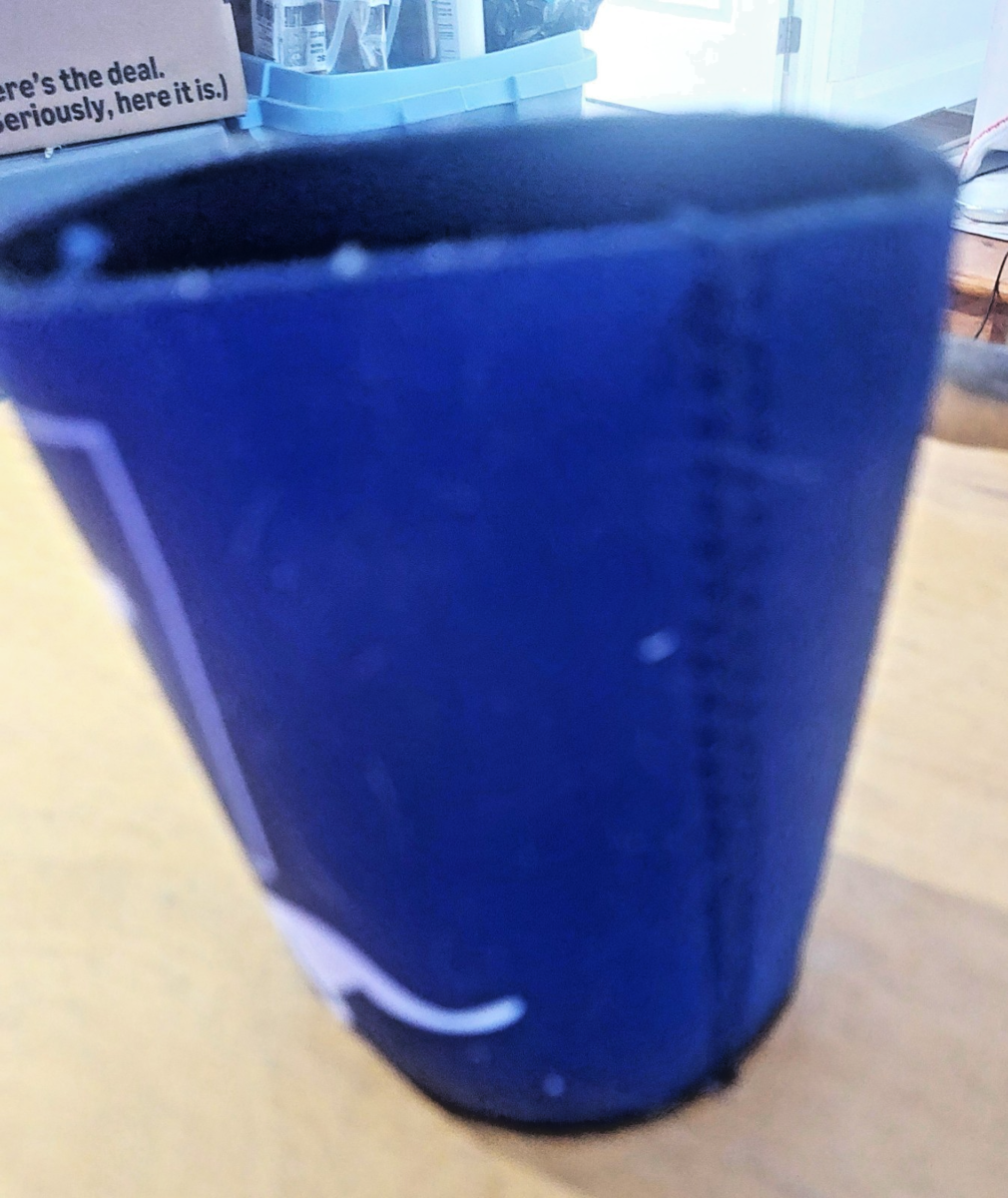 This item is an Australian flag neoprene stubby holder designed to keep drinks cold.