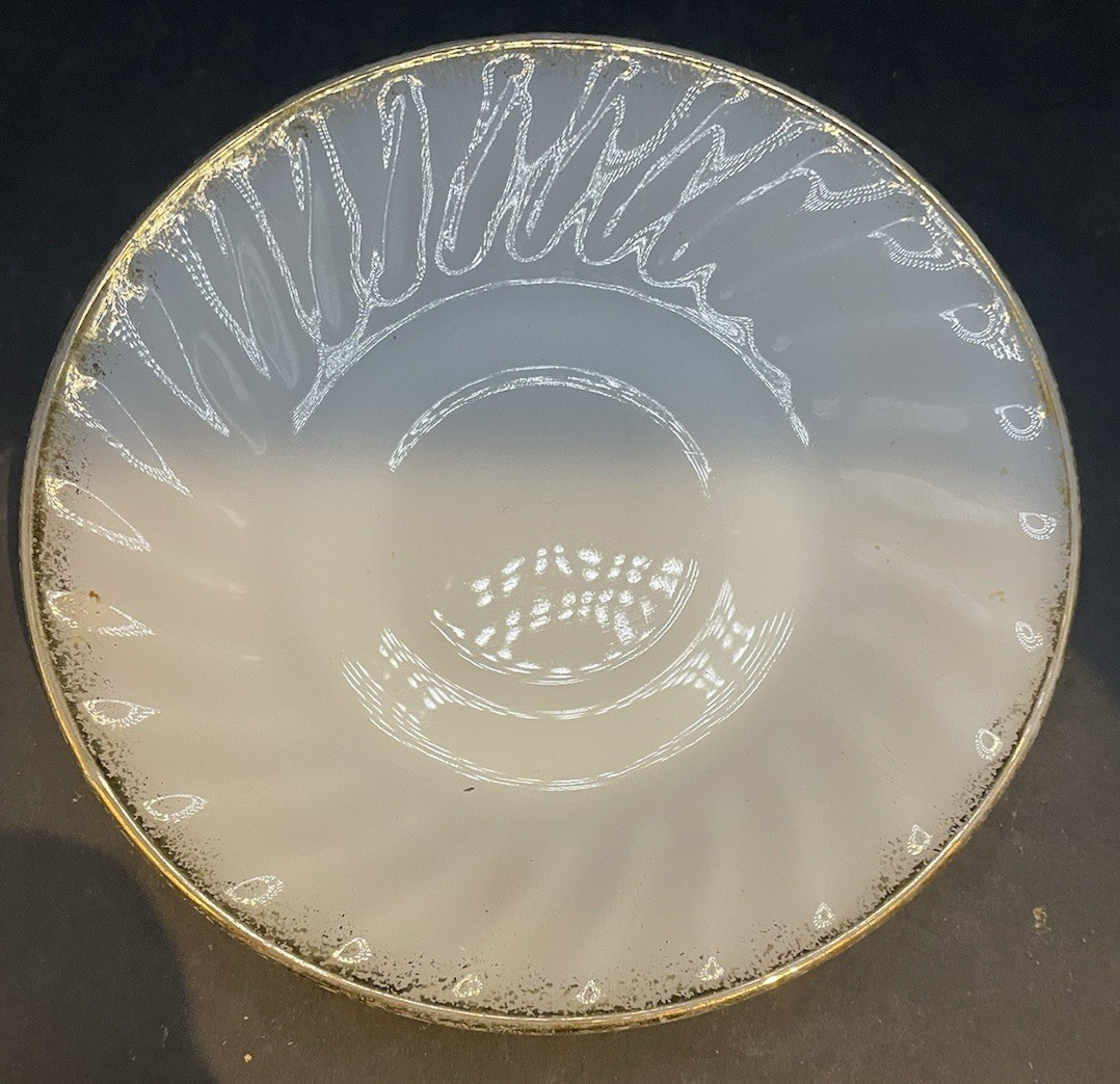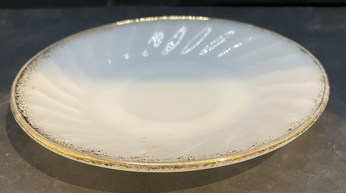 Vintage Anchor Hocking White Milk Swirl Glass 5.75" Saucer w/Gold Trim, USA