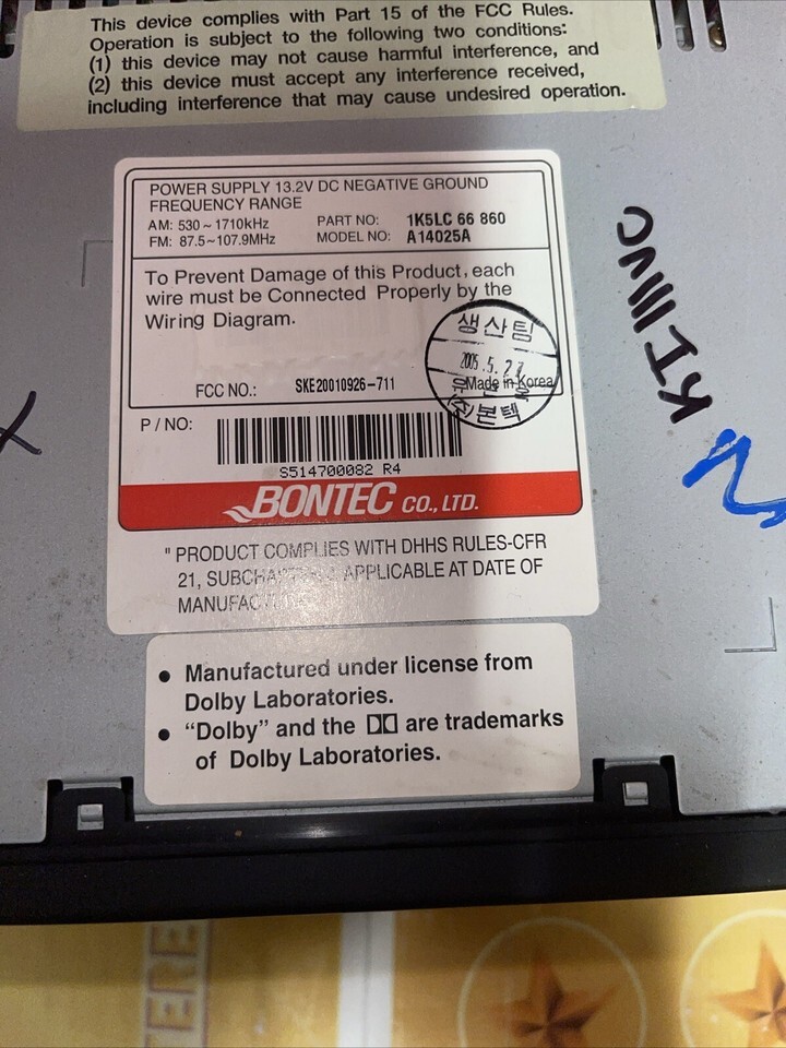 2002-2005 Kia Sedona CD Tape Player AM FM Radio Stereo P/N 1K5LC 66 860 KI111CU
