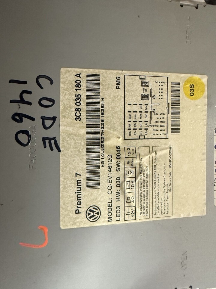 2009-2017 Volkswagen Golf Jetta AMFM Radio 6 Disc MP3 3C8 035 180 A OEM VW142U
