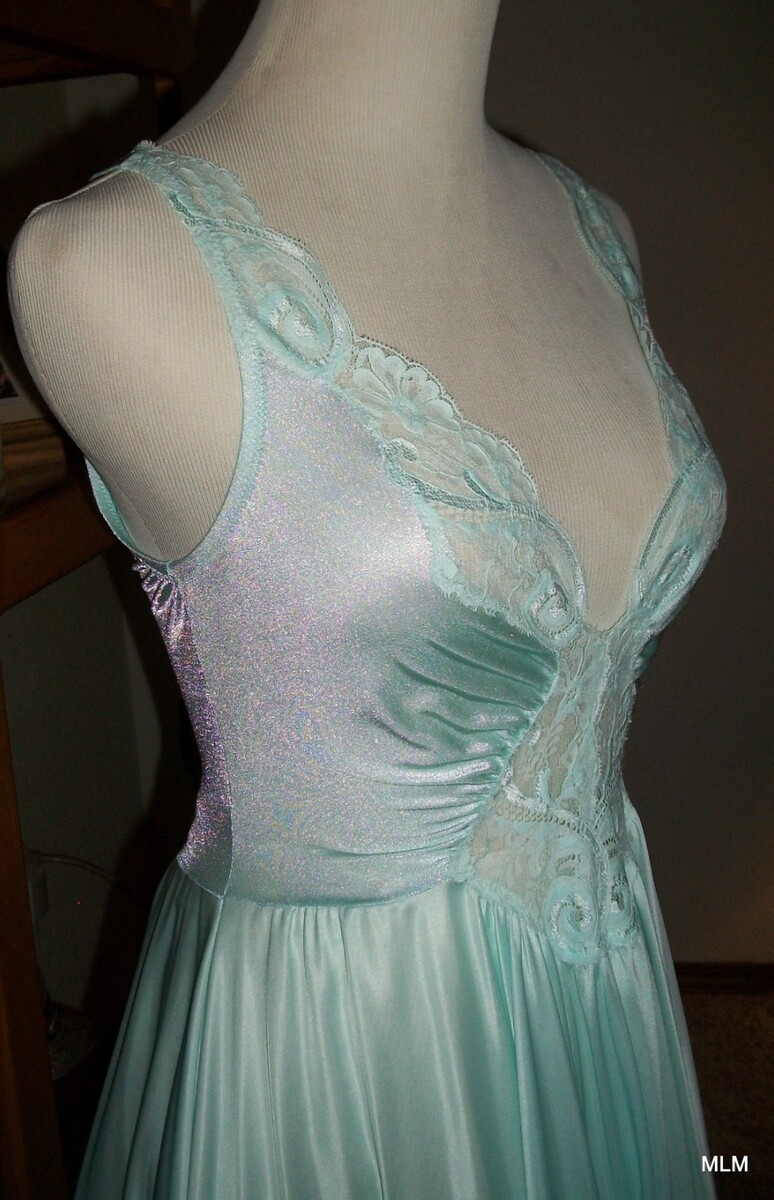 Vintage OLGA 92270 Mint Glaze Lace & Stretch-Spandex Bodice Wide Sweep Sz L