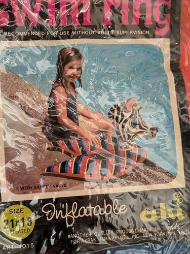 Vintage 1970's Zebra Swim Ring Inflatable Boat Pool Toy Floatie 21 x 18 Ahi NEW