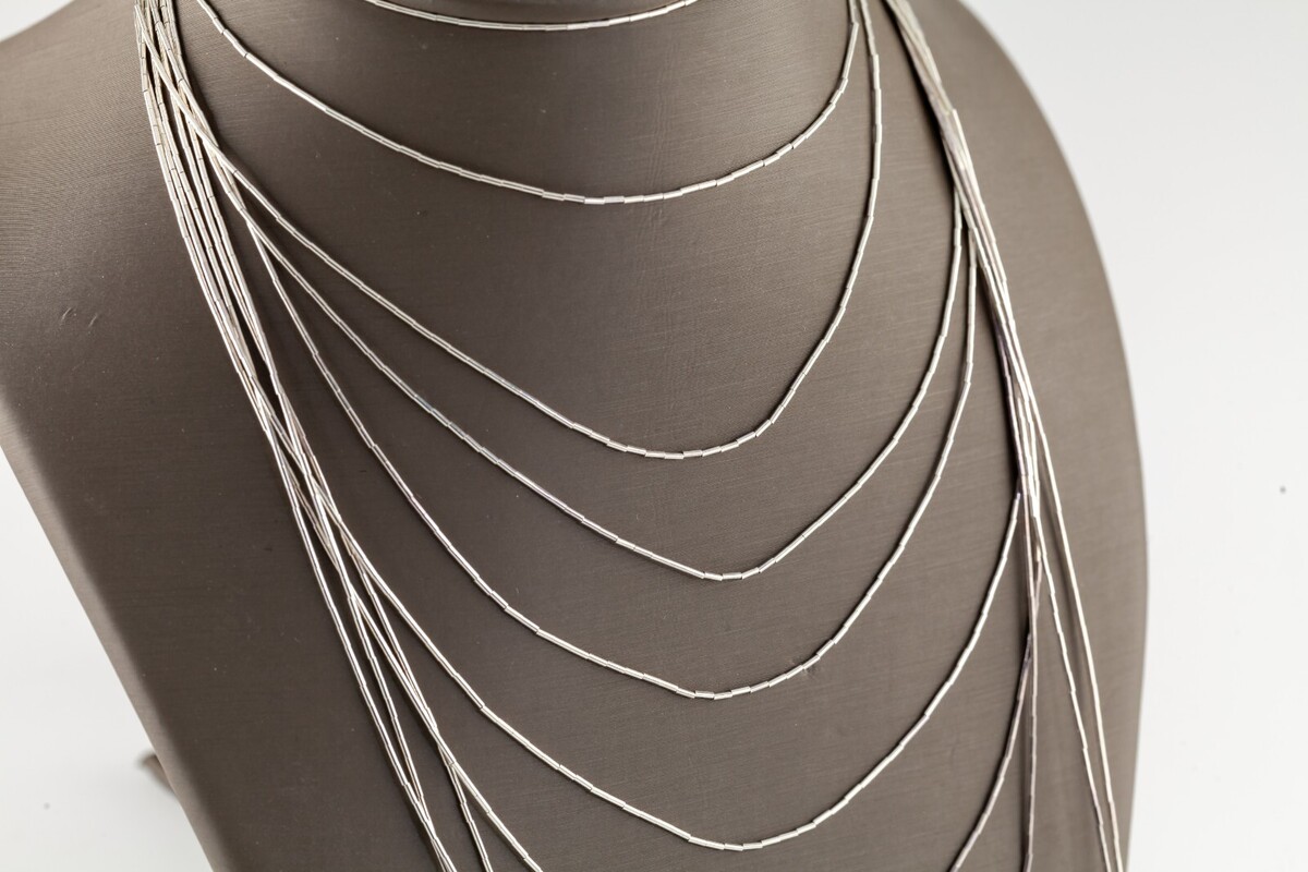 Gorgeous Running Bear Liquid 925 Silver Multi-Strand Bib Necklace 10 Strands 18"