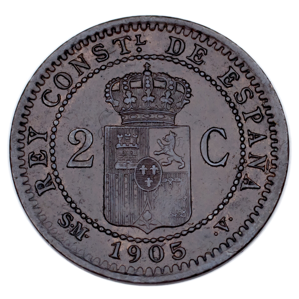 1905 Spain 2 Centimos, Uncirculated, KM# 722