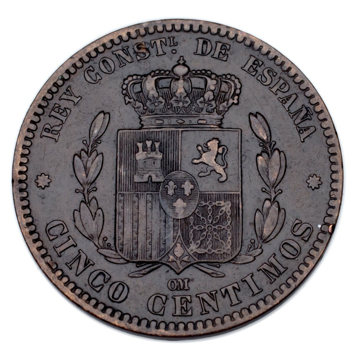 1878 Spain 5 Centimos, Very Fine, KM# 674