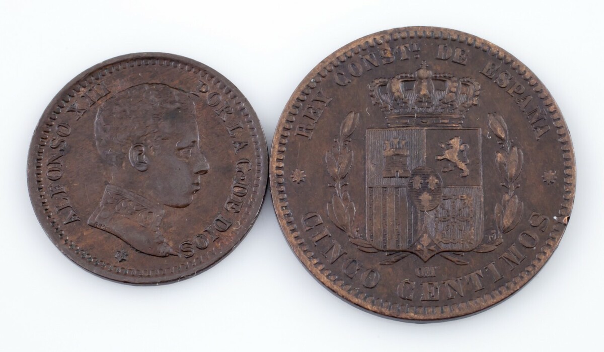 1878-1905 Spain Coin Lot (2pcs) 2 & 5 Centimos (VF-Unc)