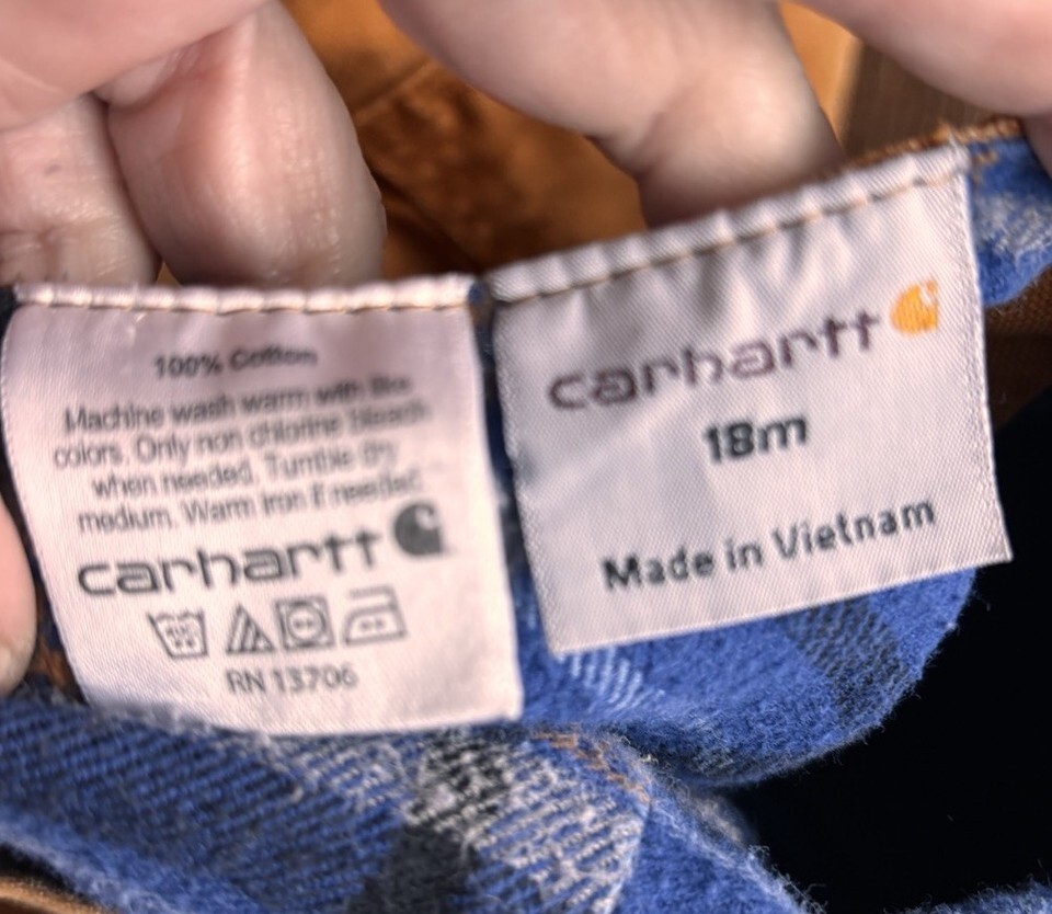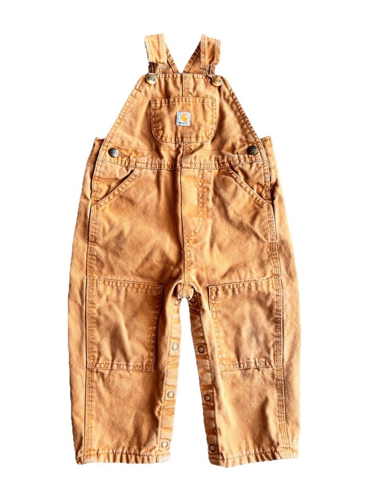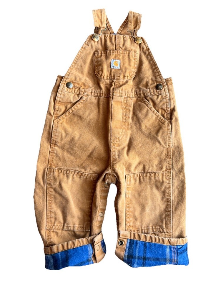 Carhartt Toddler Boys Classic Bib Overalls Brown Canvas Flannel Lined Sz 18mo