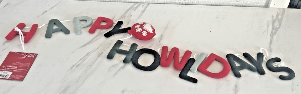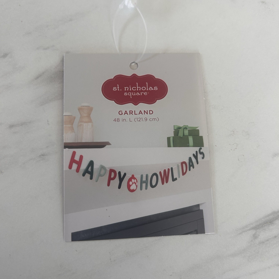St. Nicholas Square "Happy Howlidays" Christmas Garland. Red and Green Felt Letters. New. 48" in length. Super Cute.