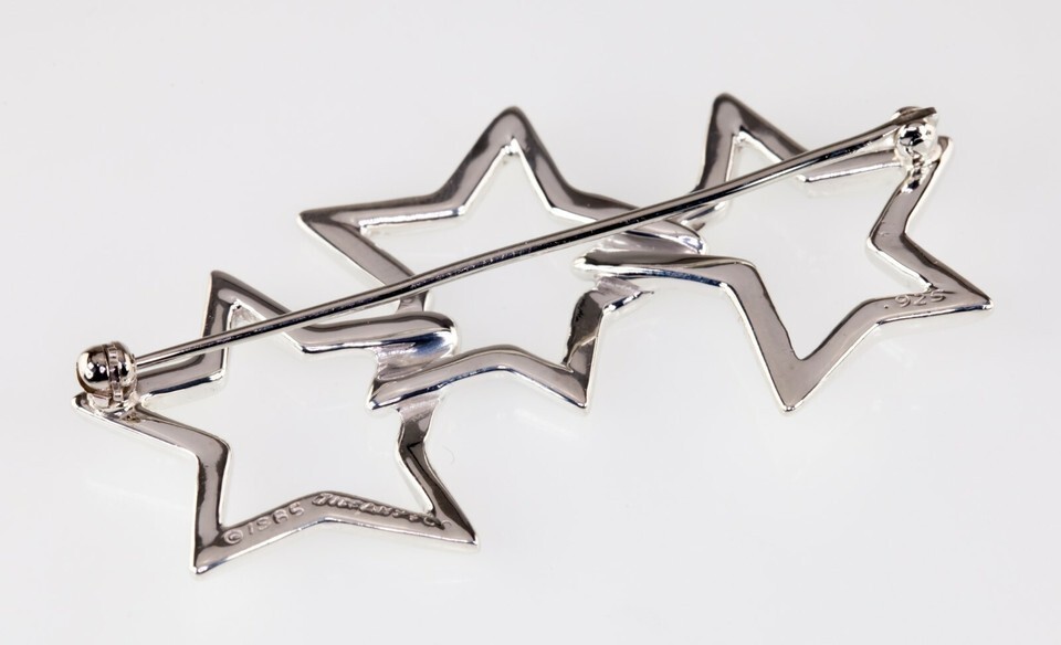 Tiffany Co. Sterling Silver Three Star Brooch Gorgeous!