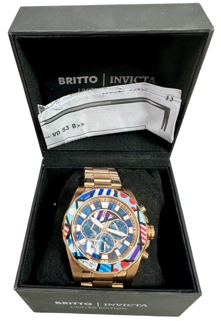 INVICTA Stainless Steel Limited Edition 50/1000 Britto Men's Watch Model #32401 New watch that has been in storage for a while and if you are planning on wearing them in the water, we suggest having them checked by a watchmaker to make sure the seals are in place as they could have deteriorated over the time Comes as shown