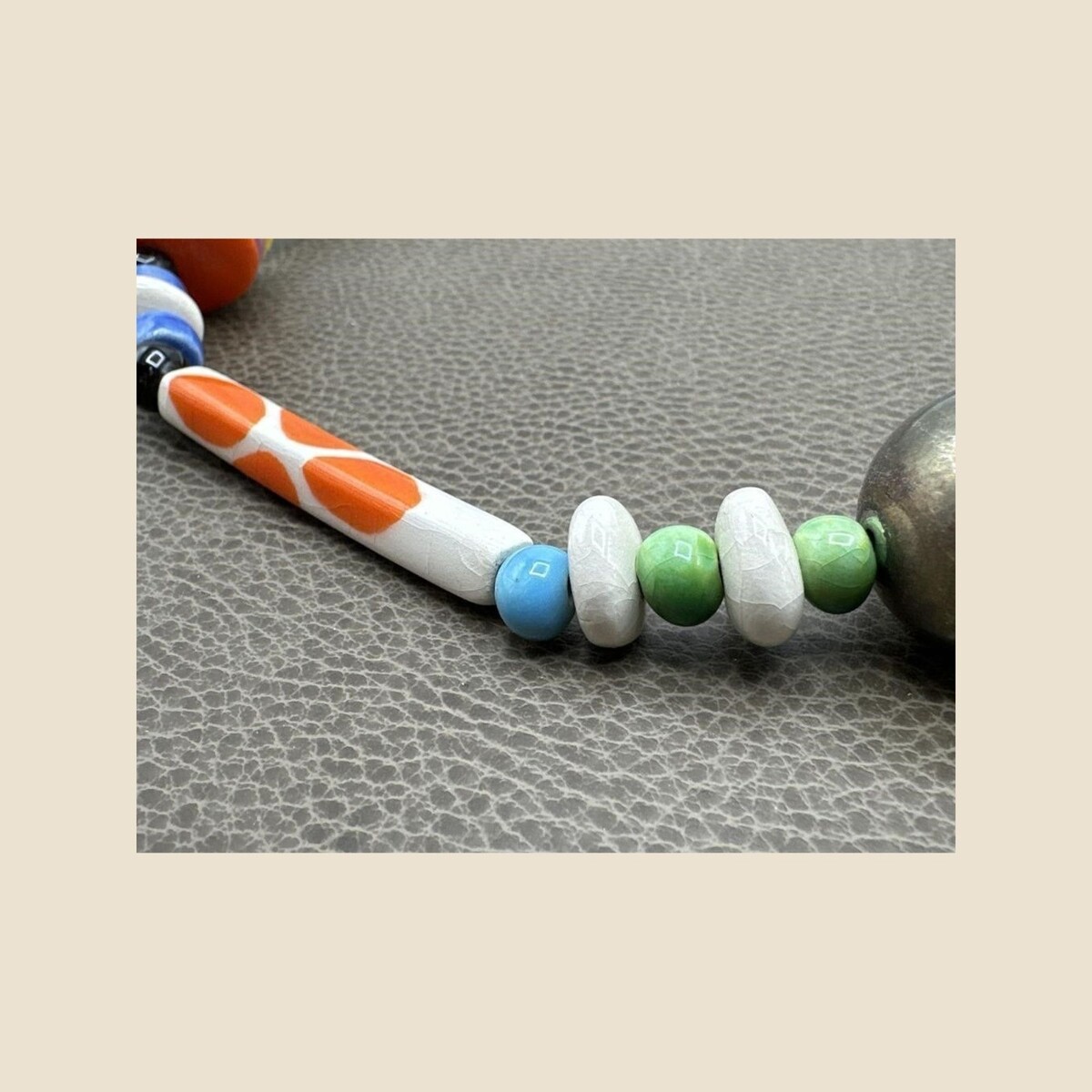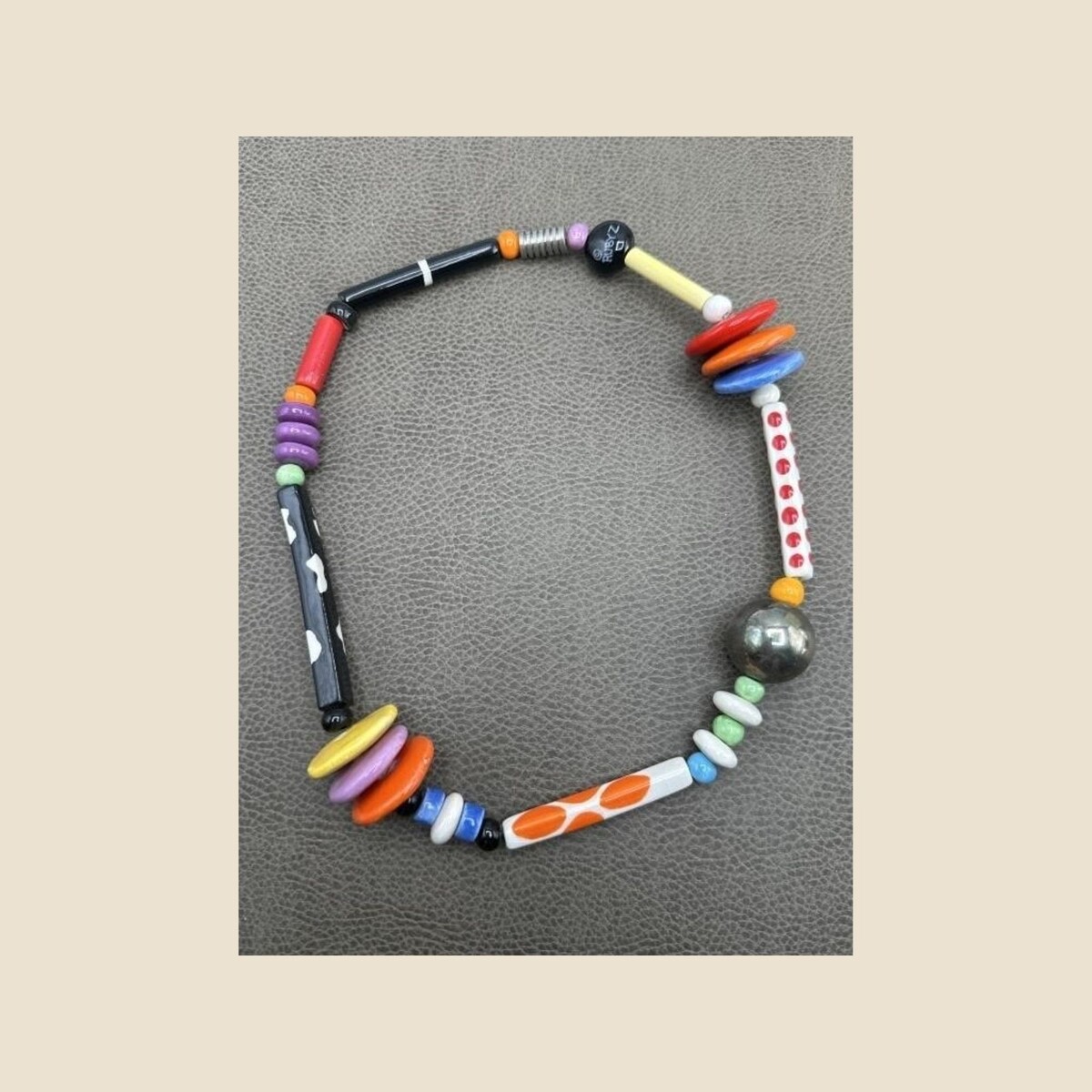 Rare Vintage Ruby Z Candace Loheed Hand Painted Ceramic Beaded Necklace