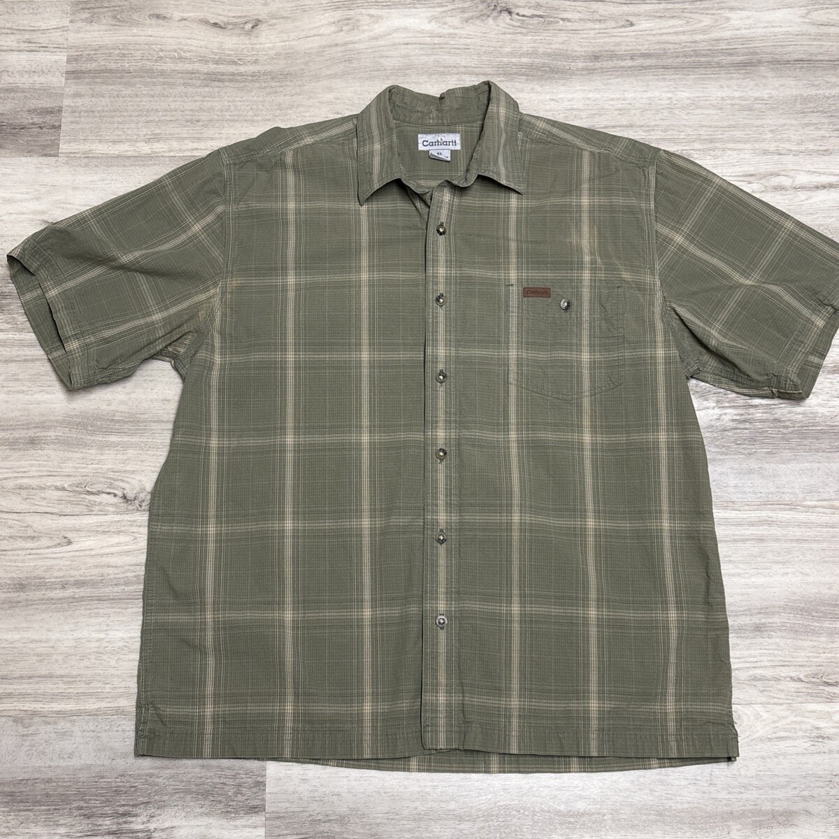 Carhartt Ripstop Shirt Mens XL Relaxed Fit Green Short Sleeve Cotton Outdoor