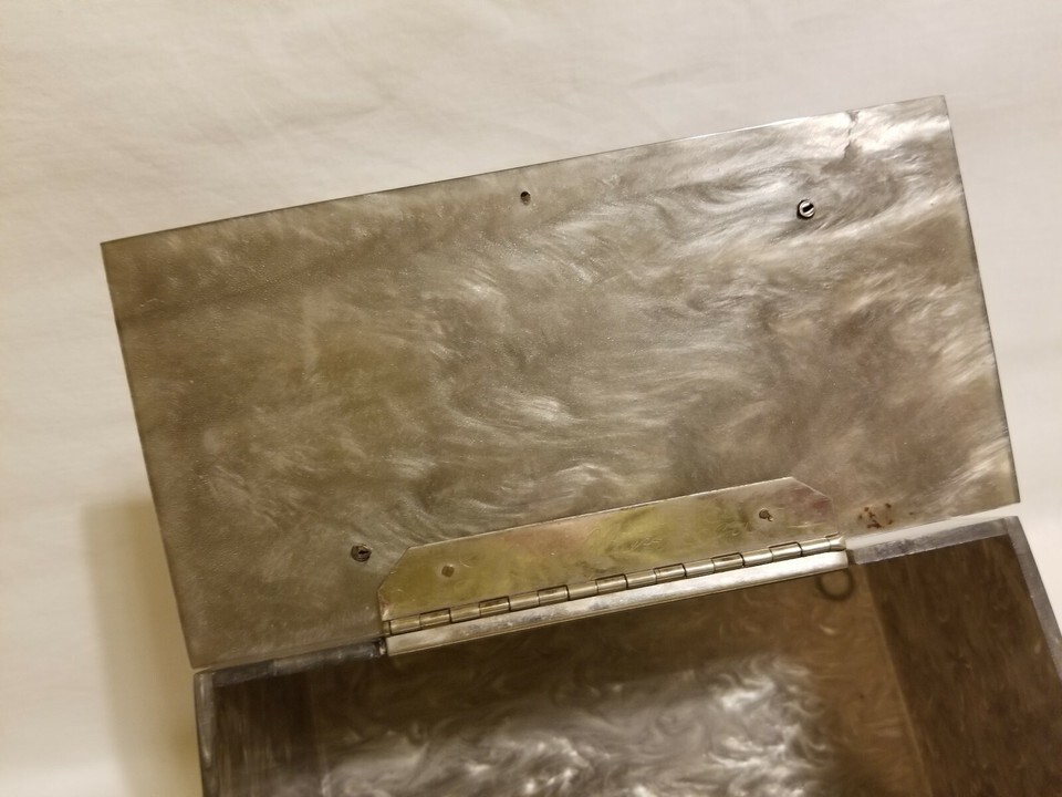 Measures 7" x 4" x 4", Signed Llewelleyn Inc NYC on inside hinge, very faint, but it is there.
