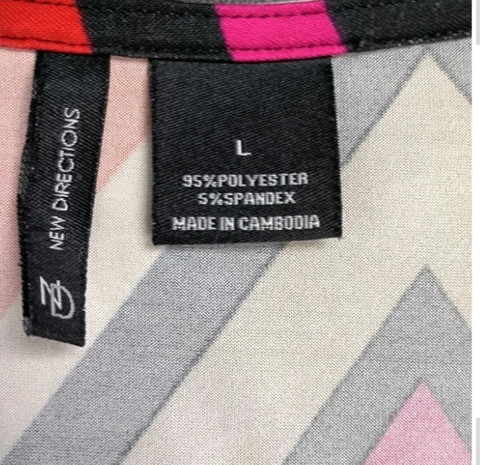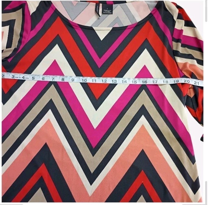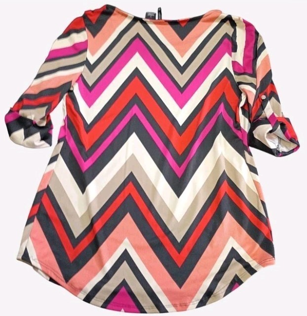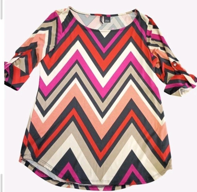 Pink and Black Chevron Print New Directions Blouse With 3/4 Sleeves Size Large. Condition is Pre-owned - Excellent. Shipped with USPS Ground Advantage.