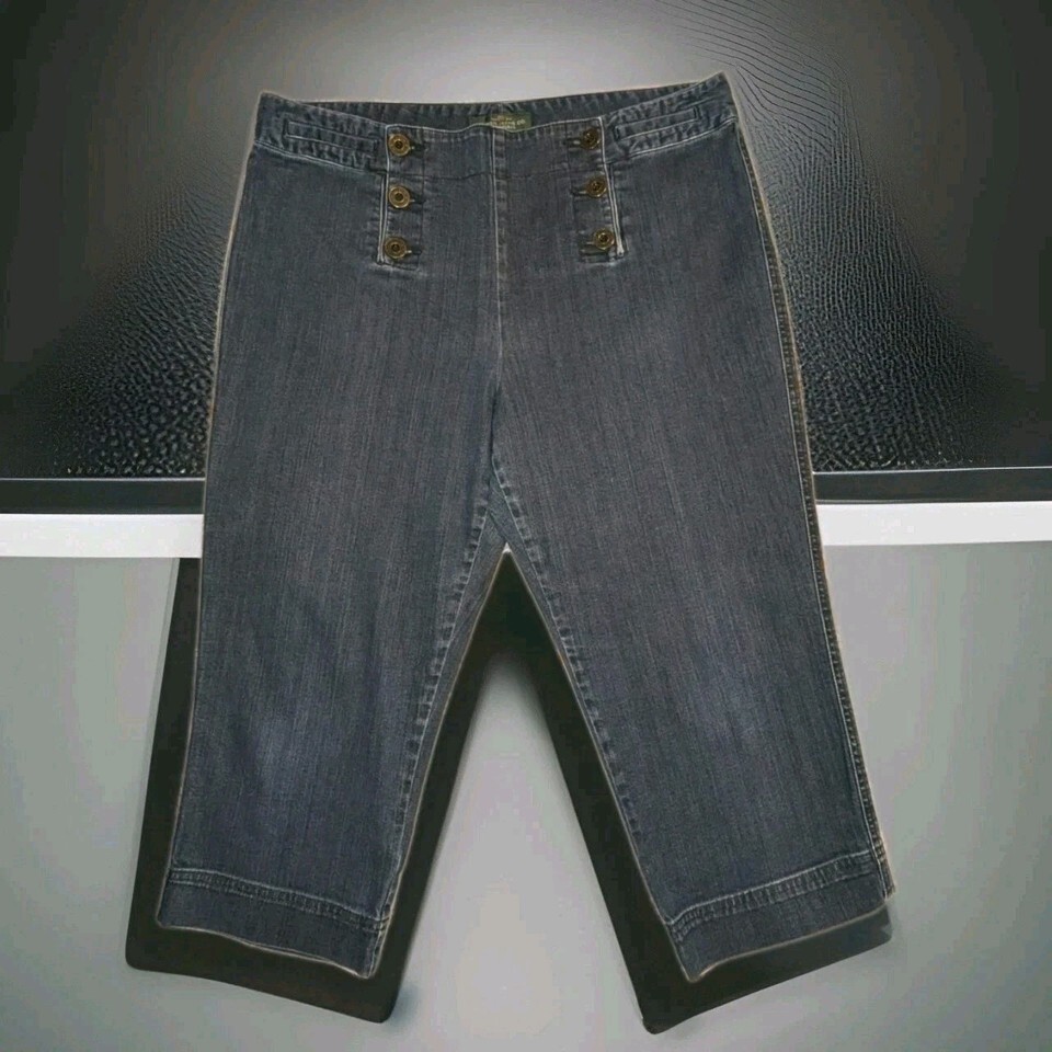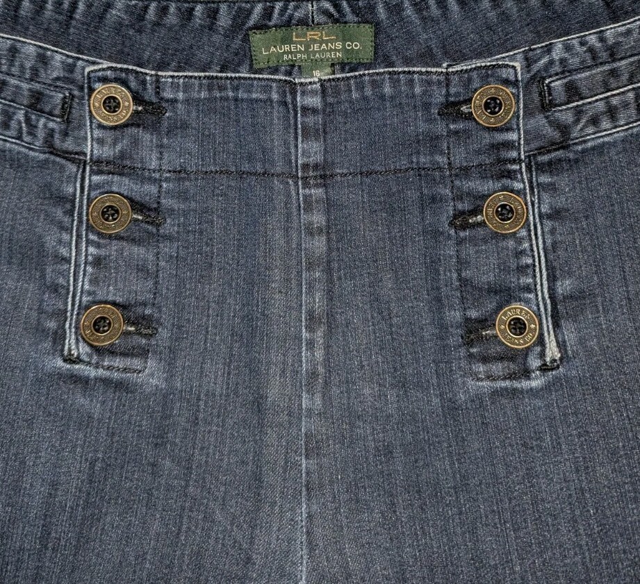 Ralph Lauren High Waist Capri Wide-Leg Cropped Blue Denim Women's Size 16