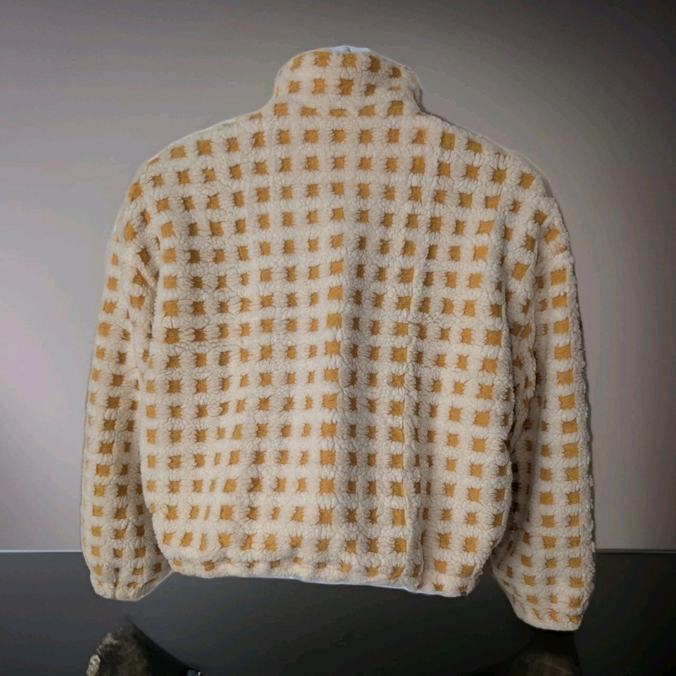 Esmeling Women's Yellow Cropped Sherpa Fleece Plaid Jacket Chunky Outerwear Sz M. Shipped with USPS Ground Advantage.