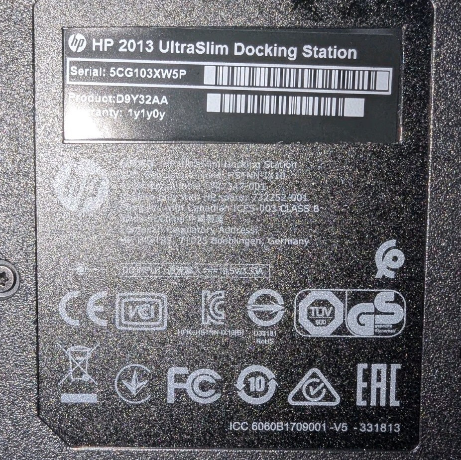HP 2013 Ultra Slim Docking Station D9Y32AA & 65W OEM Power Supply Adapter