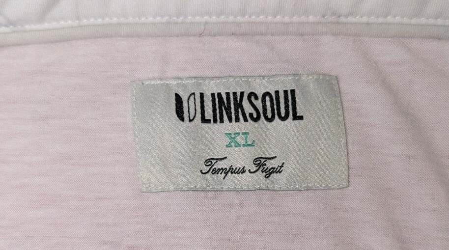 LINKSOUL Polo Shirt Mens XL White Palm Trees Tempus Fugit Performance Sport. Condition is Pre-owned - Excellent. Shipped with USPS Ground Advantage.