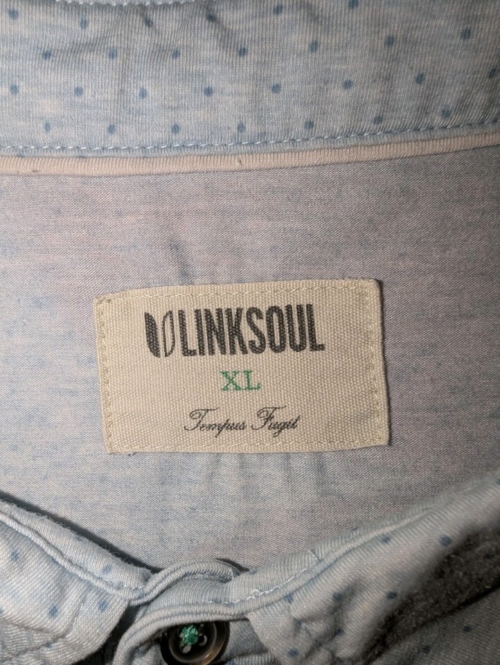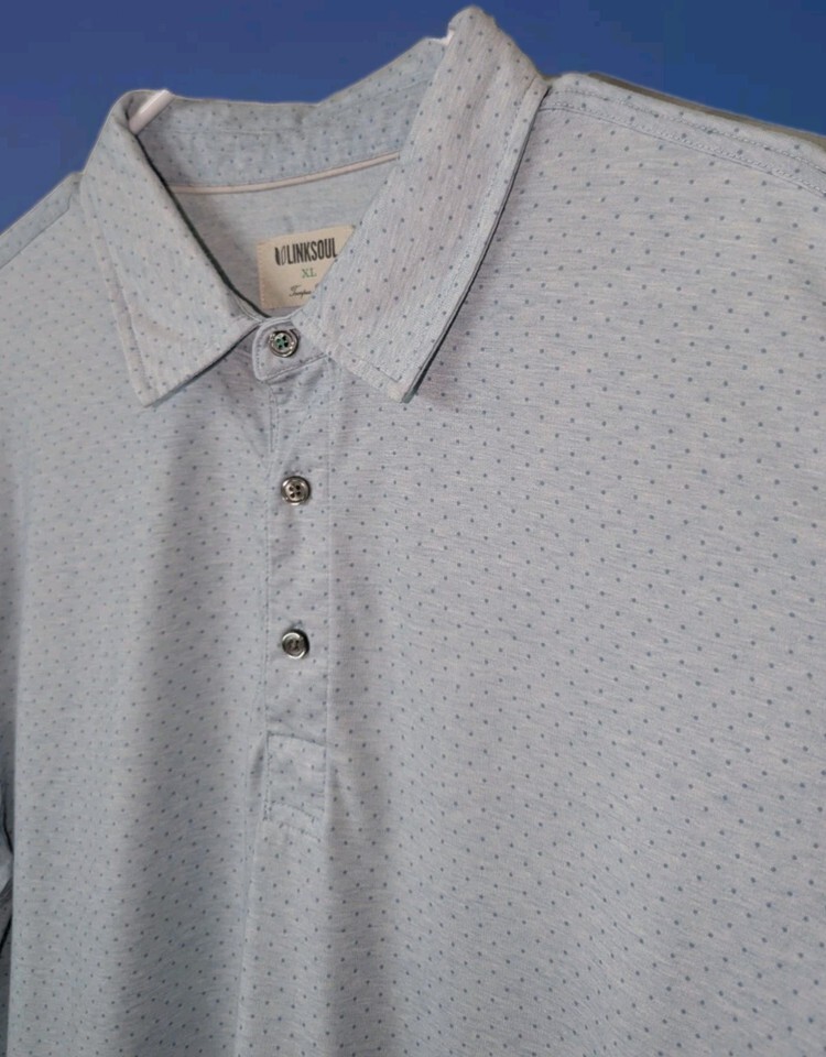 Linksoul Golf Polo Shirt Men's XL Light Blue Micro Polkadot Tempus Fugit Preppy