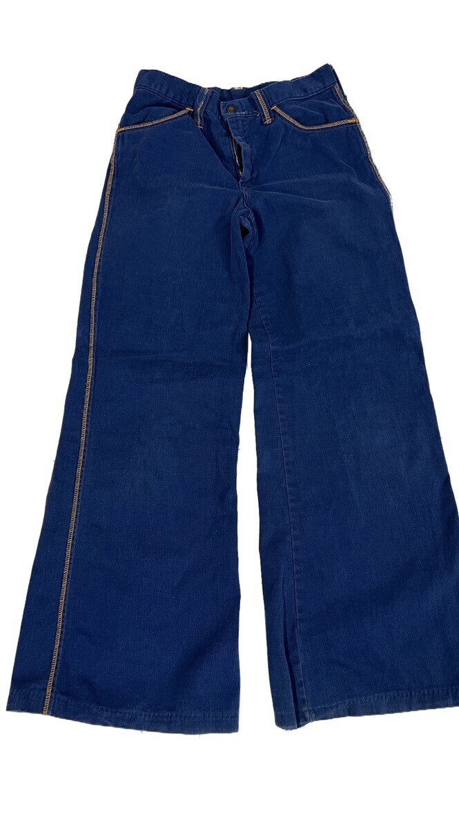 VTG 1970s Sears Jr Bazaar Bell Bottom Jeans Blue Wide Leg High Waist 29x31