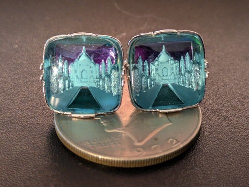 Vintage Taj Mahal Bleu Argent Boutons Manchette Swank 1950s Arts Du Monde 3D