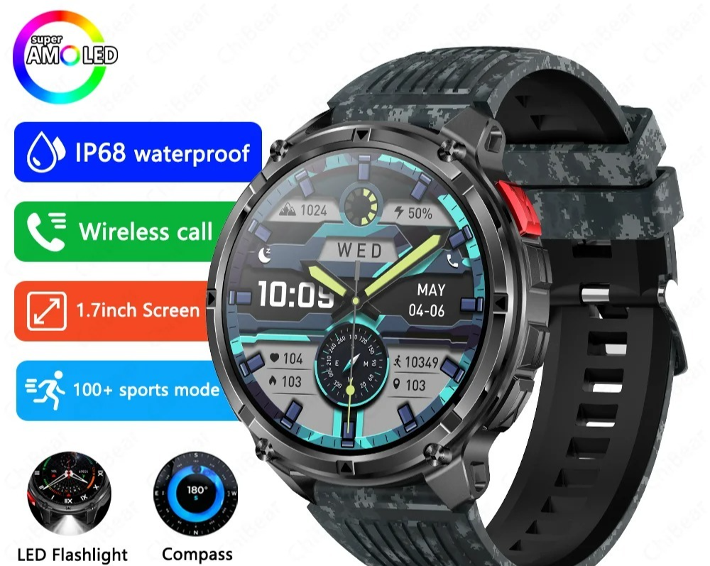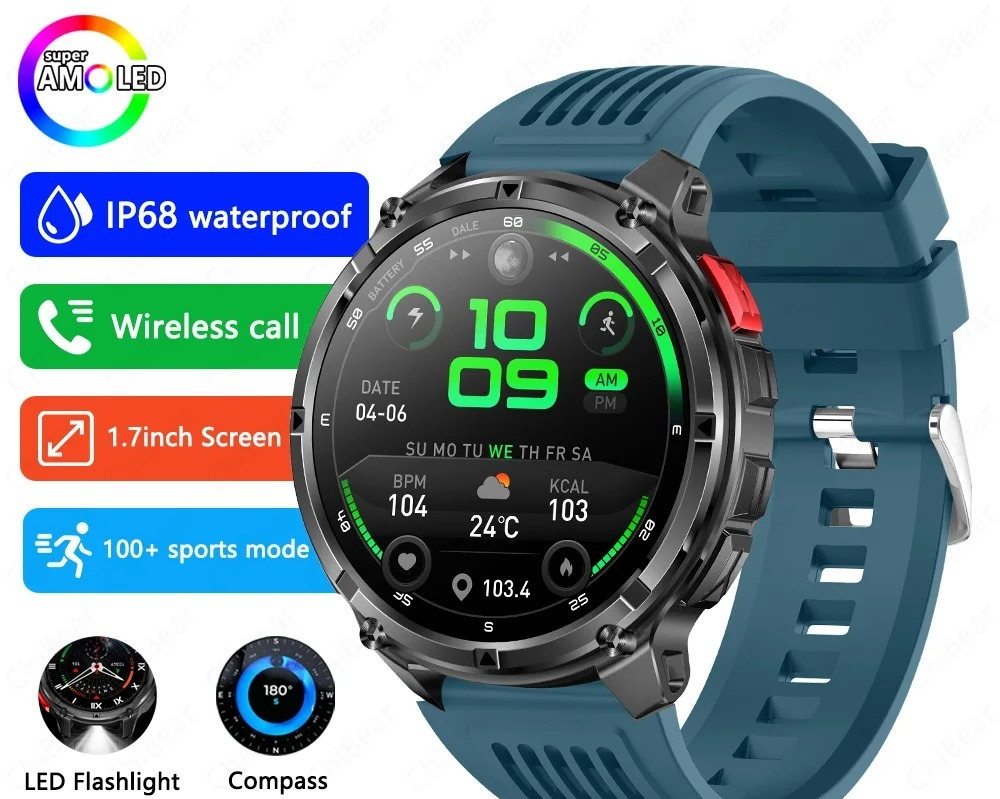 Smartwatch Rugged with GPS - AMOLED HD 1000mAh Battery Bluetooth Call IP68