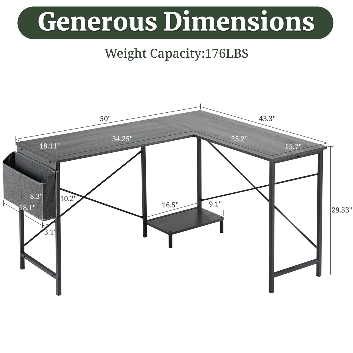 Escritorio Gamer En Forma L De 50 Pulgadas Mueble Para Computadora Laptop Office