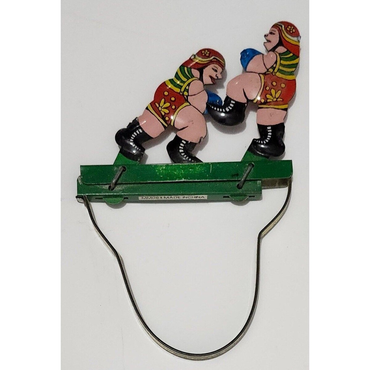 Vintage Tin Litho Sumo Wrestlers Hand Squeeze Toy 3.5" wide x 5.5" long