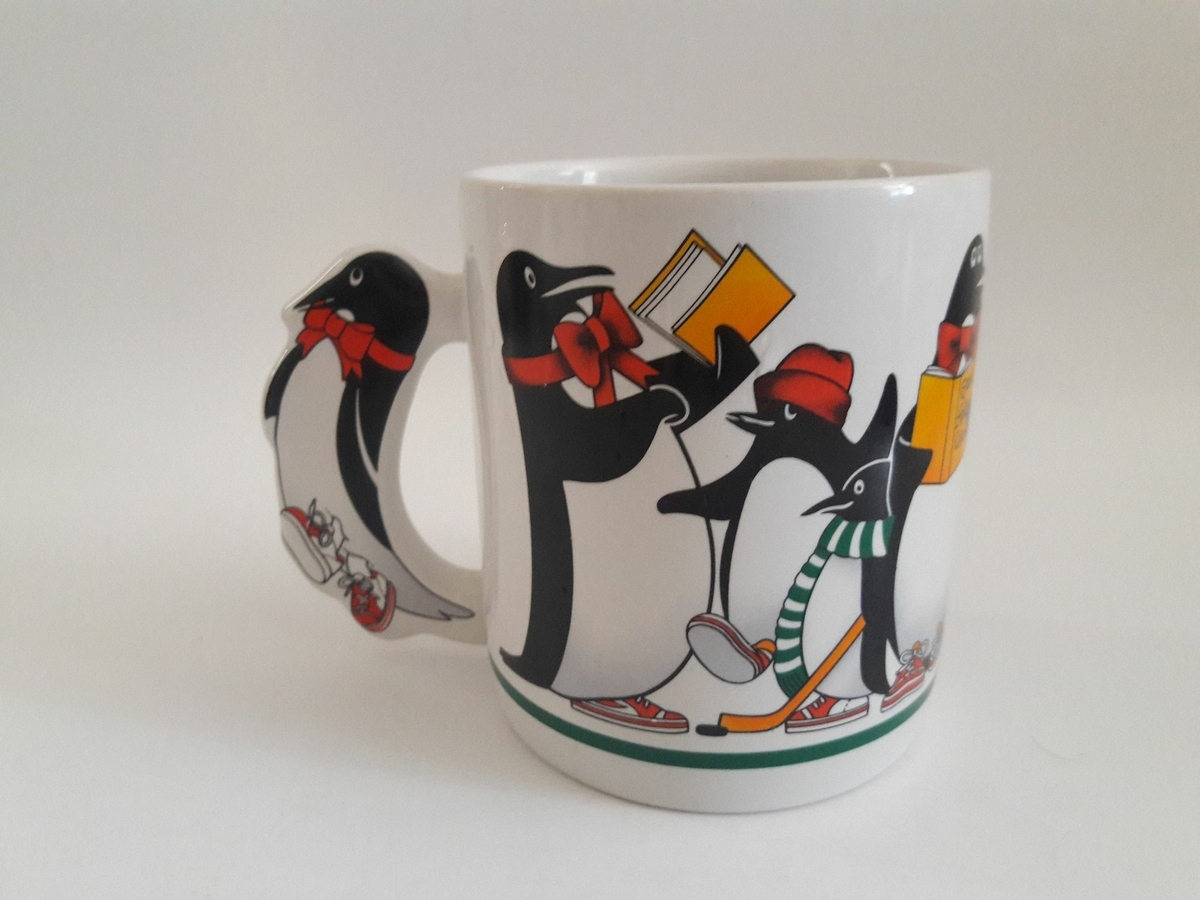 The mug is part of "The Love Mug" franchise and is an officially licensed reproduction from 1987. It is a vintage item with a unique pattern featuring the year 1987 and the lovable penguin characters. This unisex adult coffee mug is perfect for collectors or fans of penguins and will add a touch of whimsy to any kitchen or home.