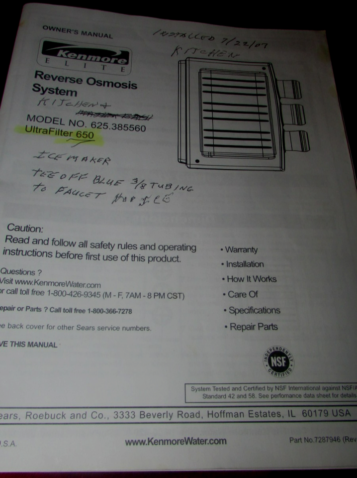 Kenmore Reverse Osmosis System Model 625 and similar items