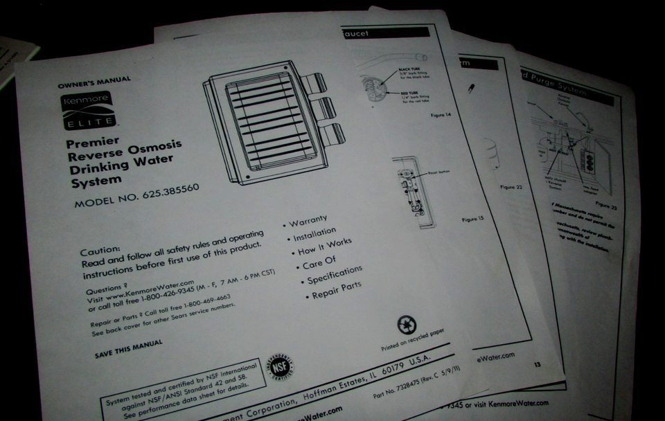 Kenmore REVERSE OSMOSIS SYSTEM Model 625 385560 INSTALLATION BOOKLET (libryK)