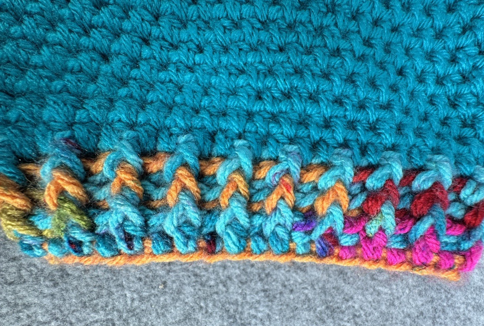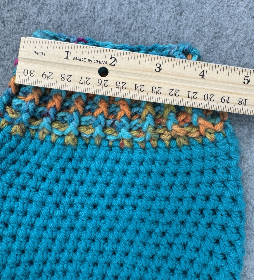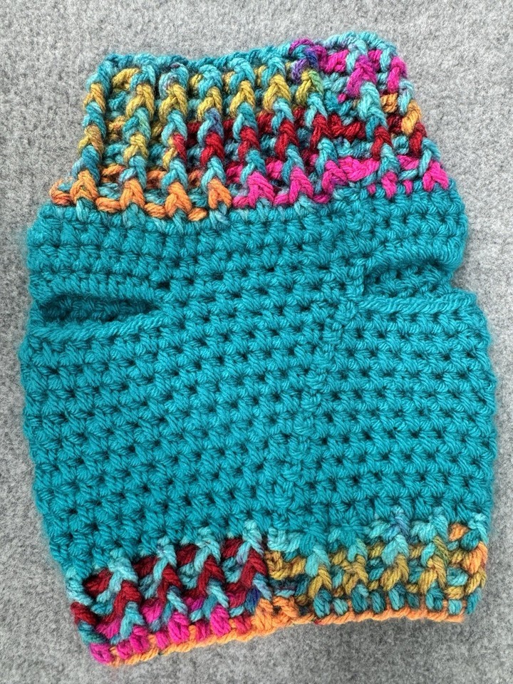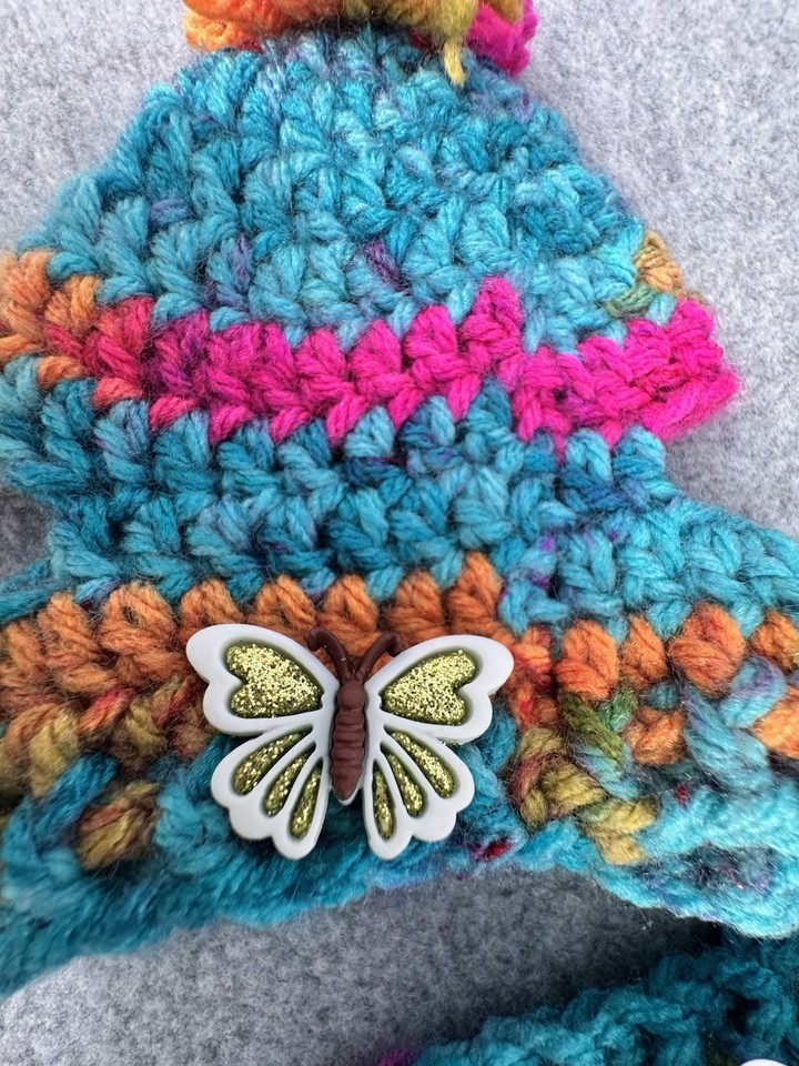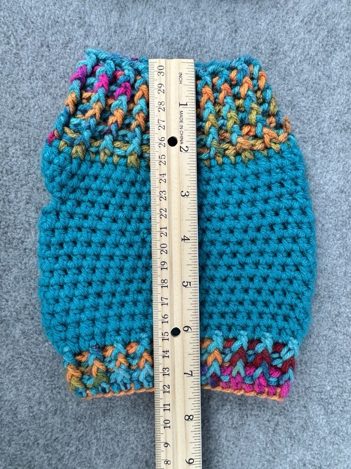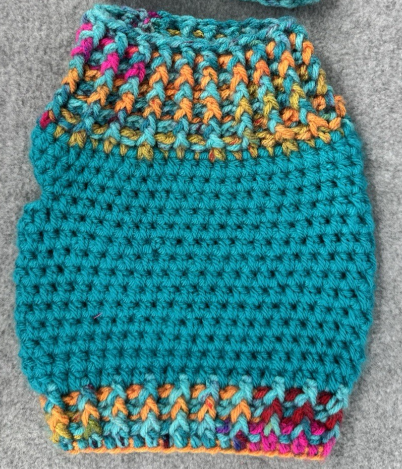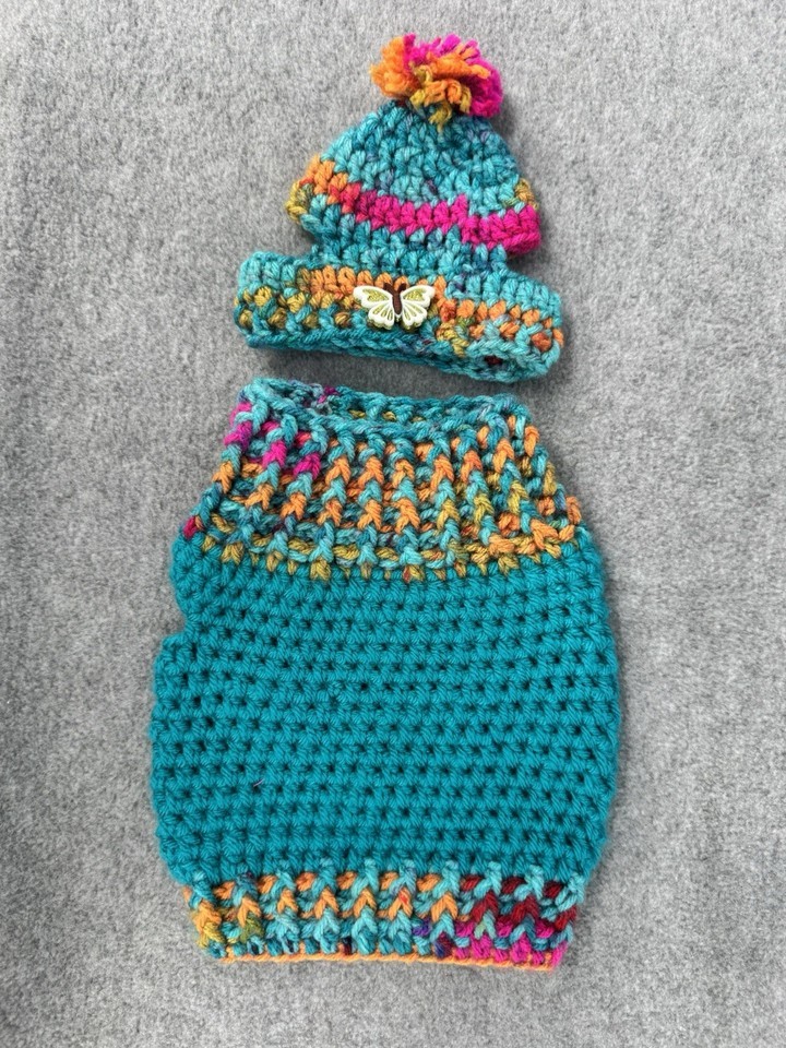 Dog Sweater & Hat Set Small Teal Multicolor Handmade Crochet Pom Pom Puppy