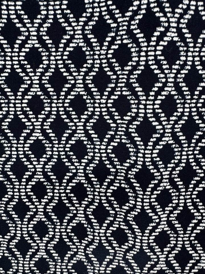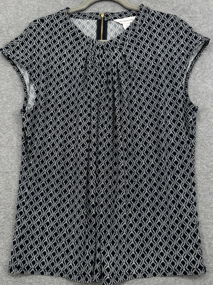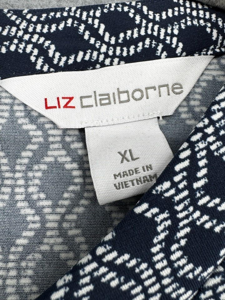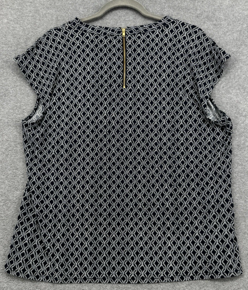 Navy Blue Geometric Print Blouse XL Short Sleeve Stretch Work Top