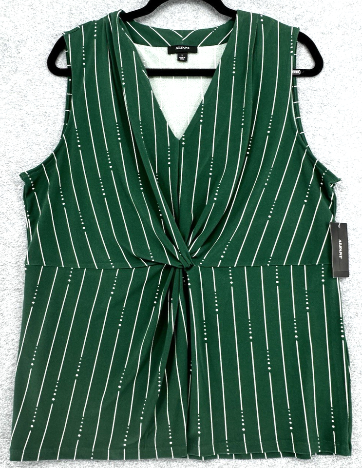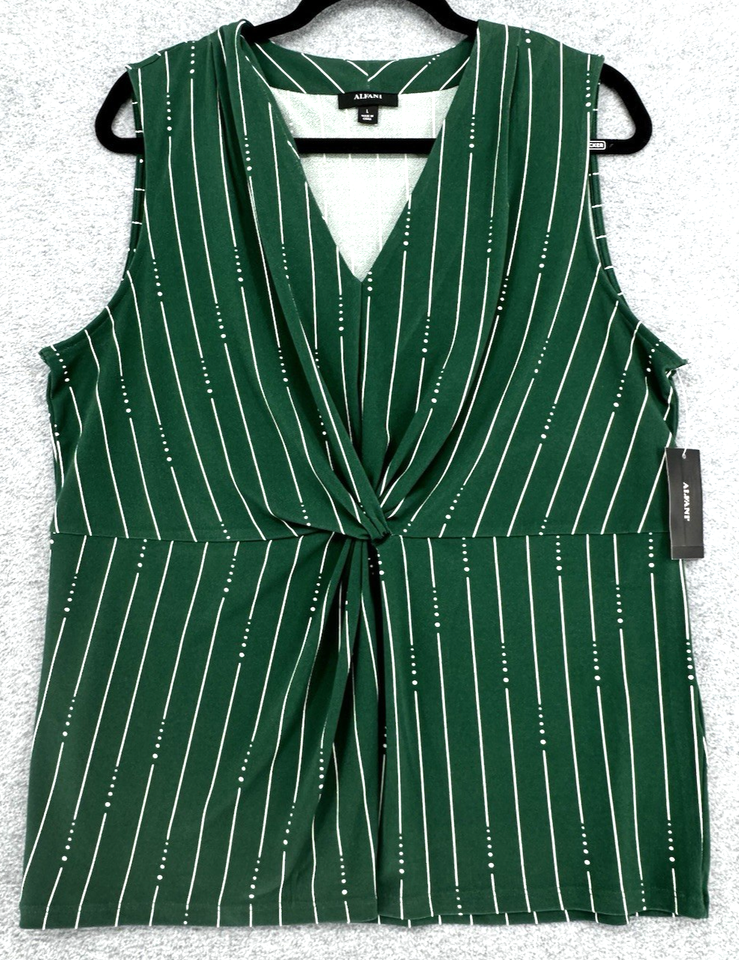 Green Sleeveless Blouse Women’s Large V Neck Knot Front Stretch Top