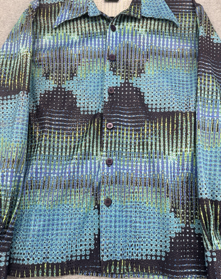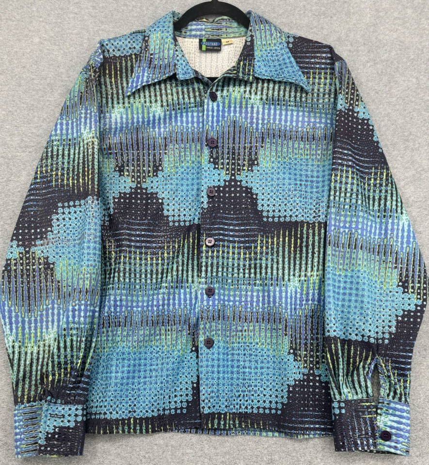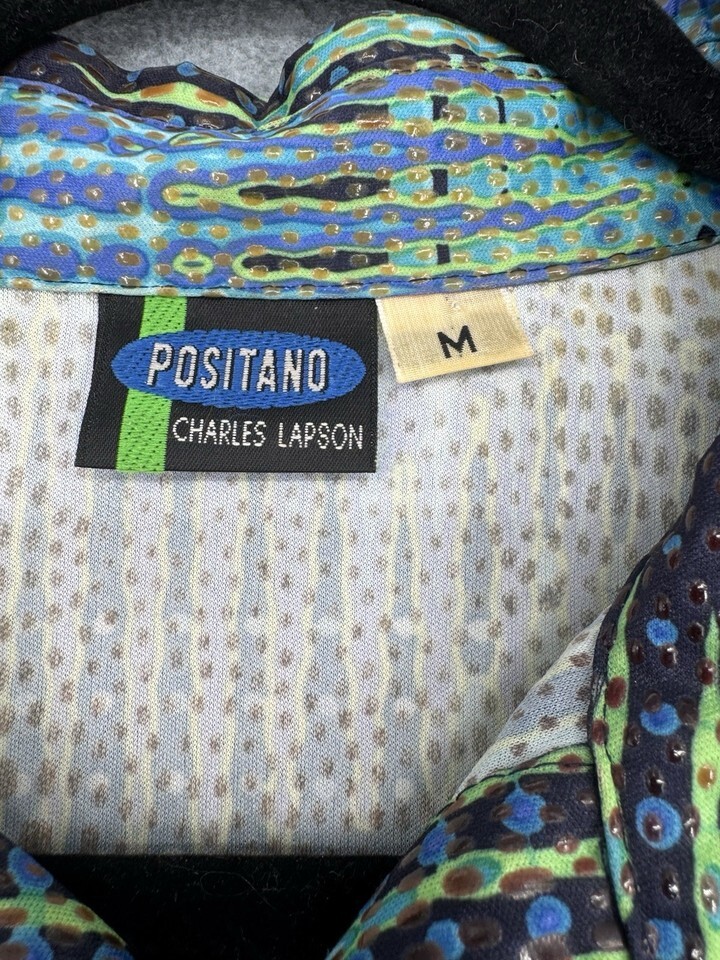 Women’s Positano - Charles Lapsen Blue Green Abstract Textured Resort Blouse Med