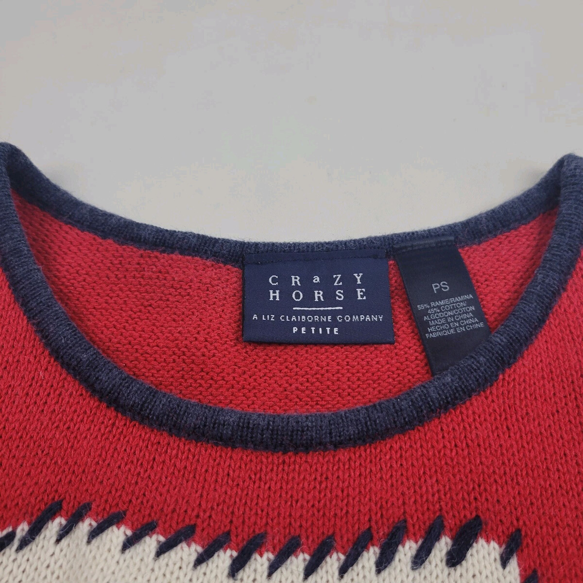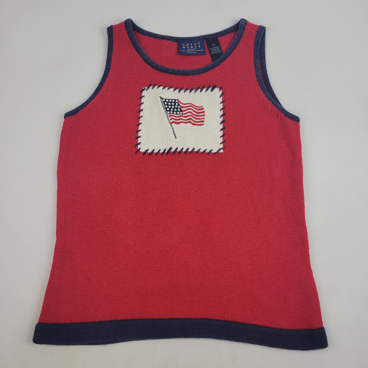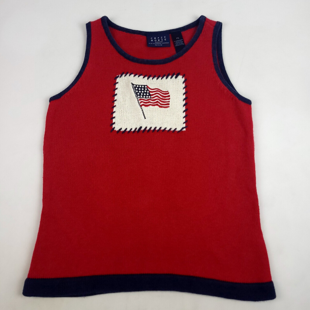 Crazy Horse Liz Claiborne Patriotic American Flag Sweater Vest Women's Petite S
