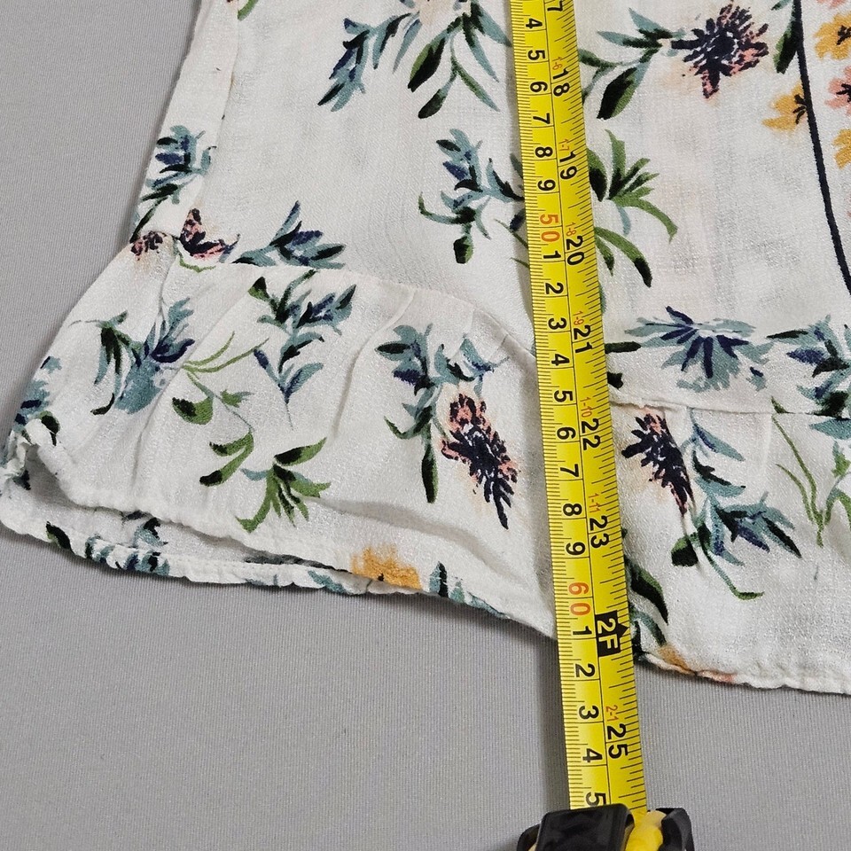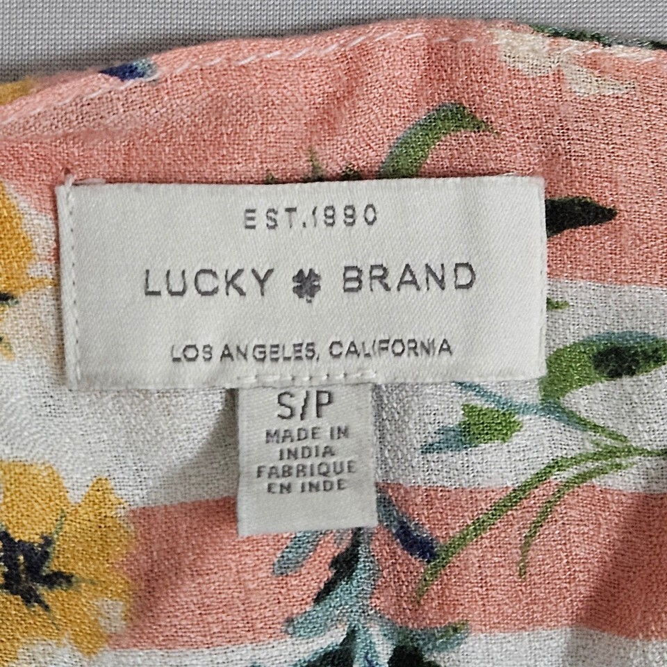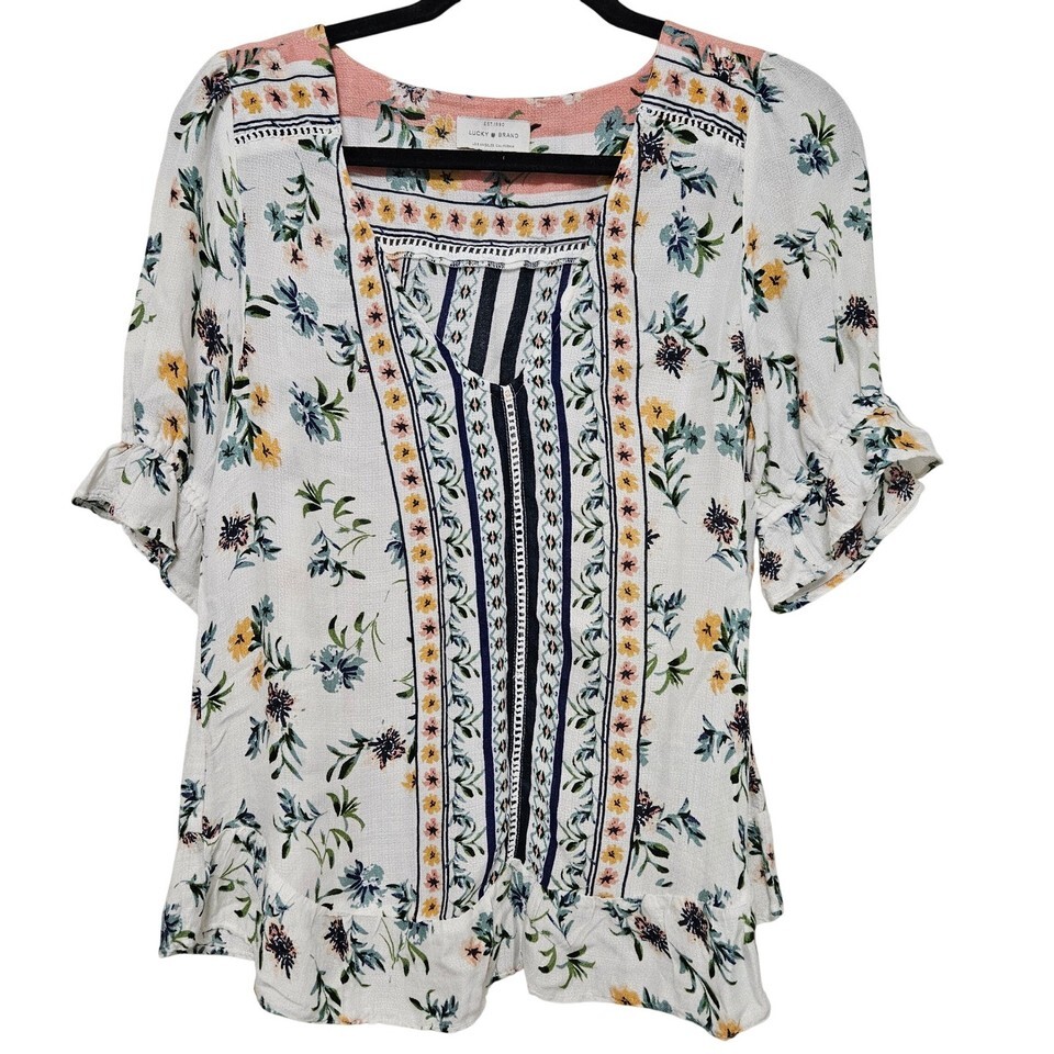 LuckyBrand Floral Boho Peasant Blouse Ruffle Hem Indie Cottage S Summer Viscose