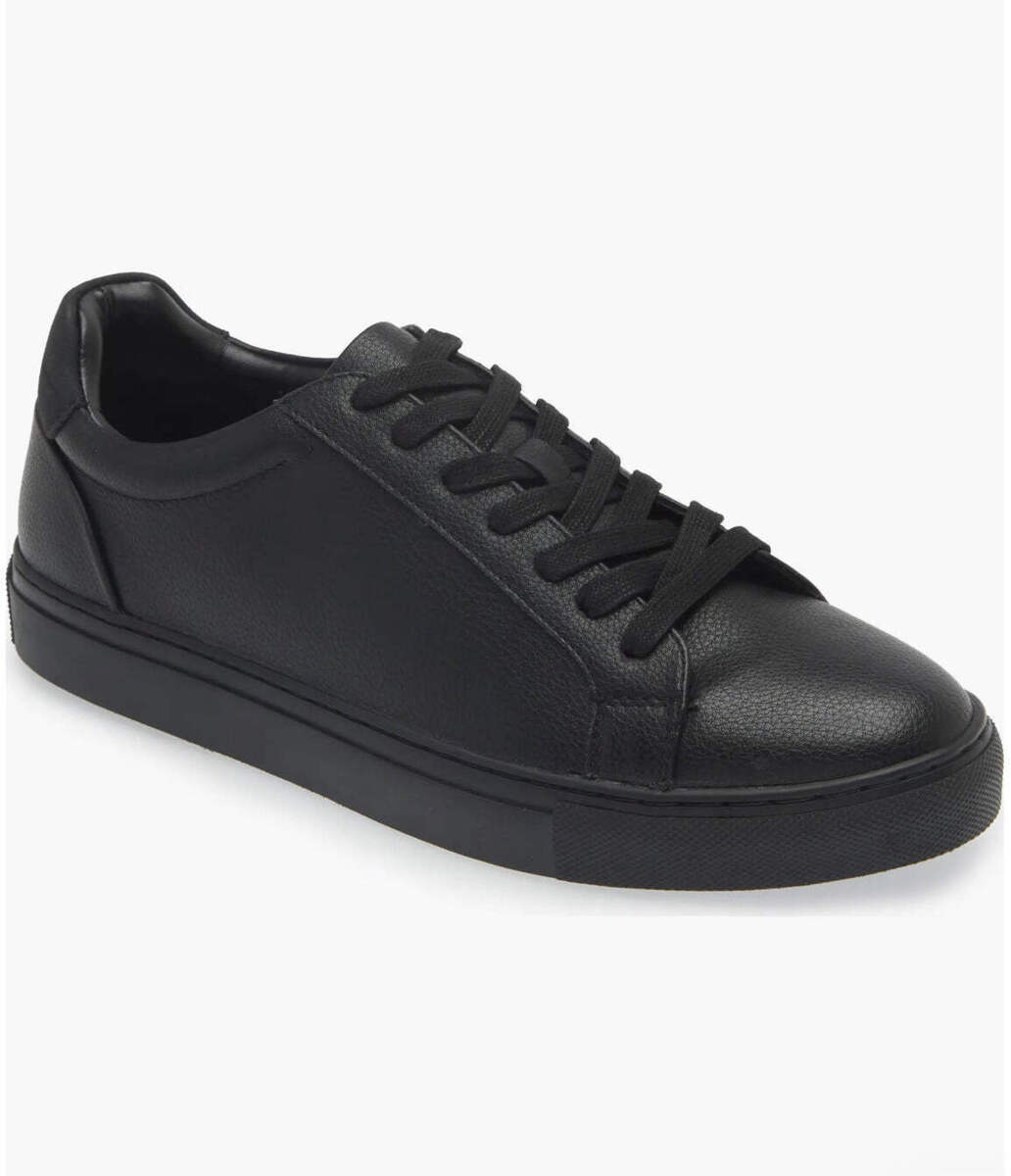 Kenneth Cole Reaction Men Tedder Black Sneakers A faux-leather finish brings polished appeal to this low-top sneaker for all your casual looks. Synthetic upper and lining/rubber sole