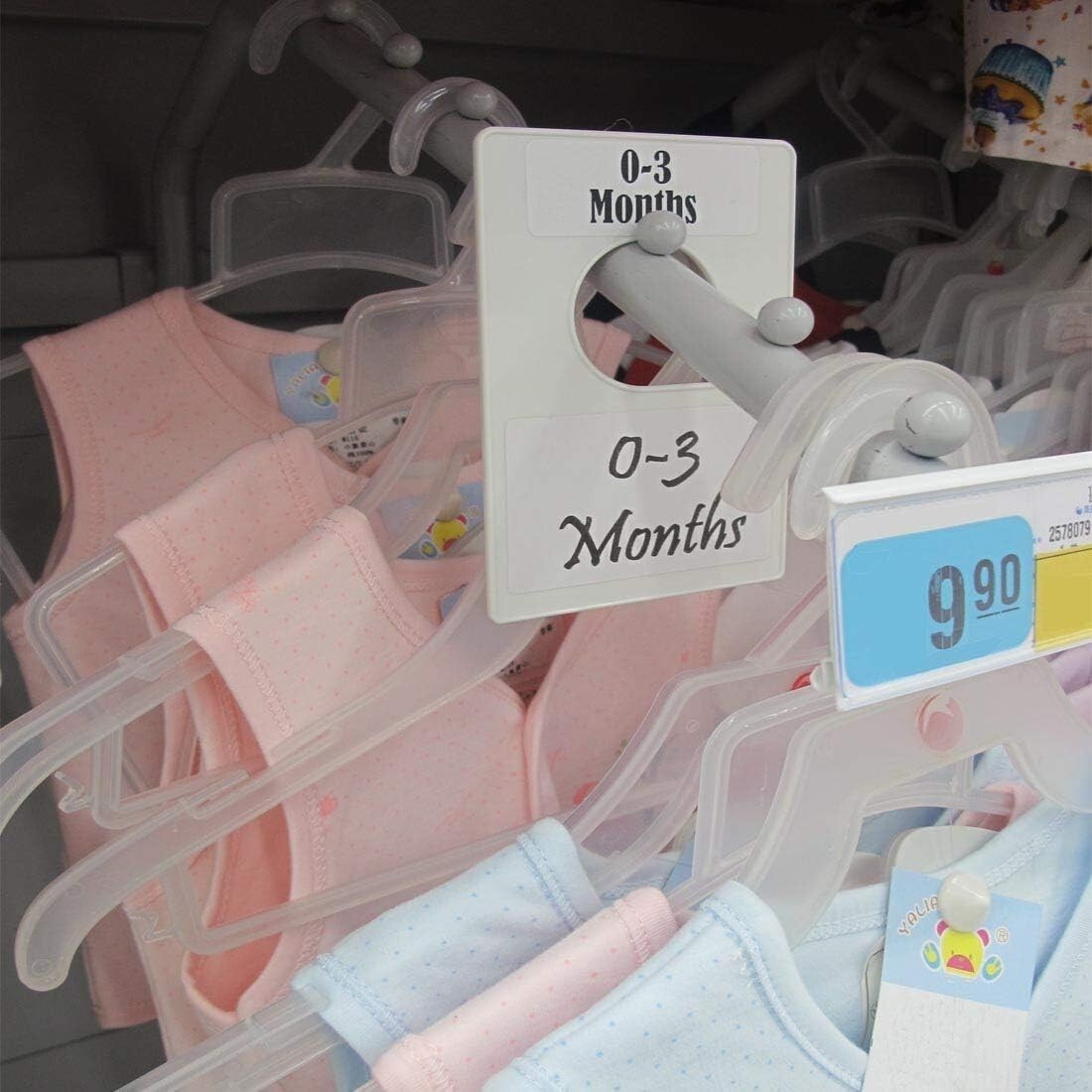 Ideal for wire rack closets, laundry organization, and retail shelf size separation.