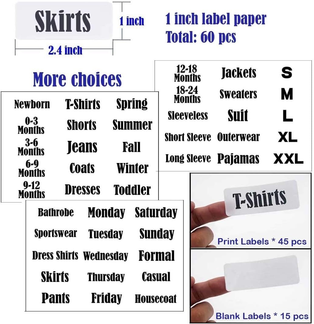 Labeling System: Comes with 45 printed sorting labels (1-inch) and 15 blank labels, along with 16 large blank labels for total customization.