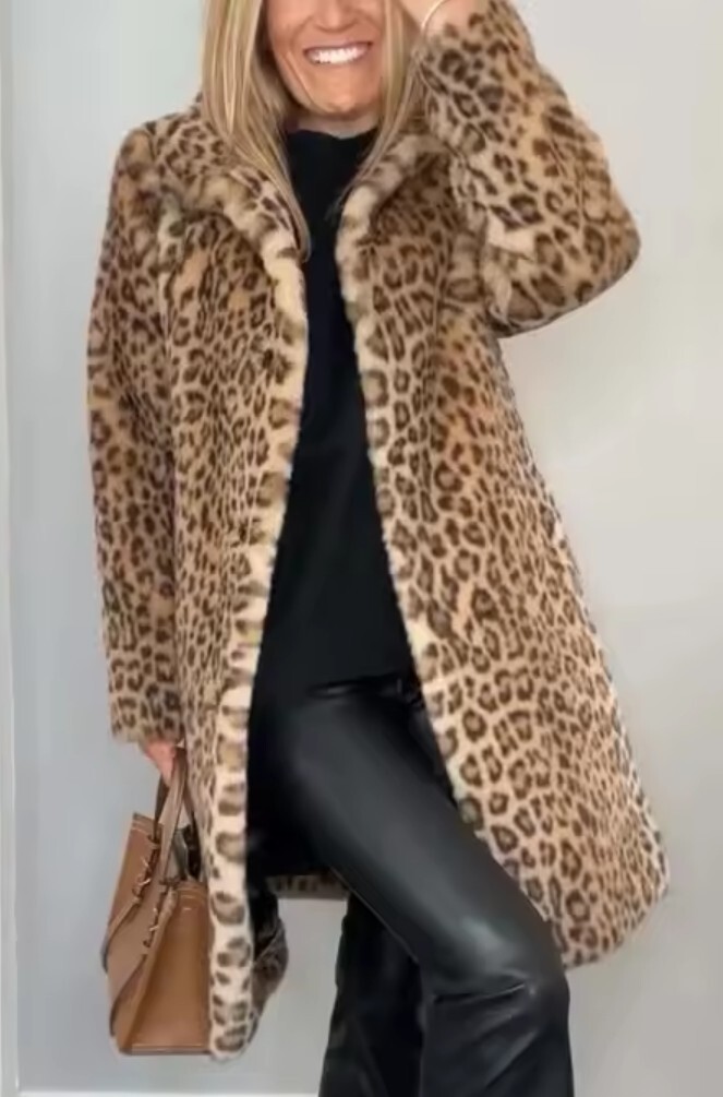 Khaki Spotted Leopard Warm Soft Fleece Autumn and Spring Mid Length Fashion Coat