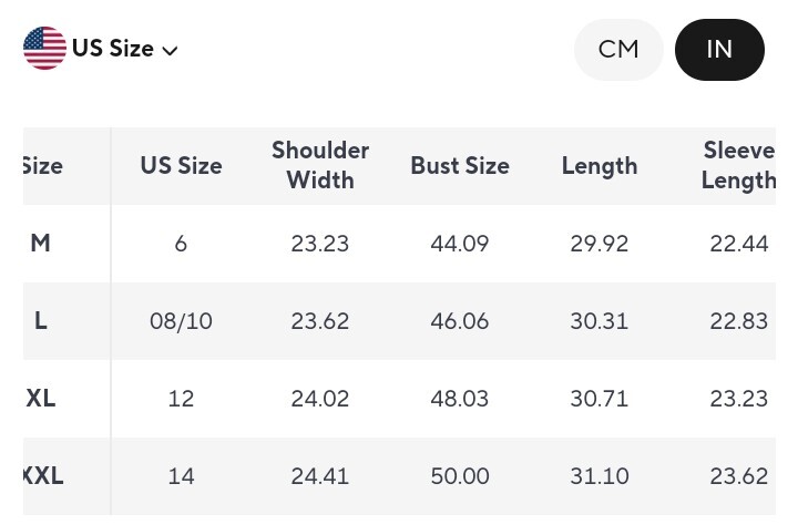 Measures: (According to Sizes in Chart)