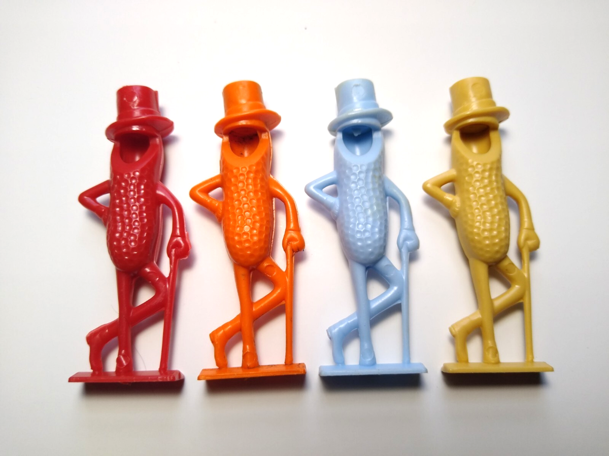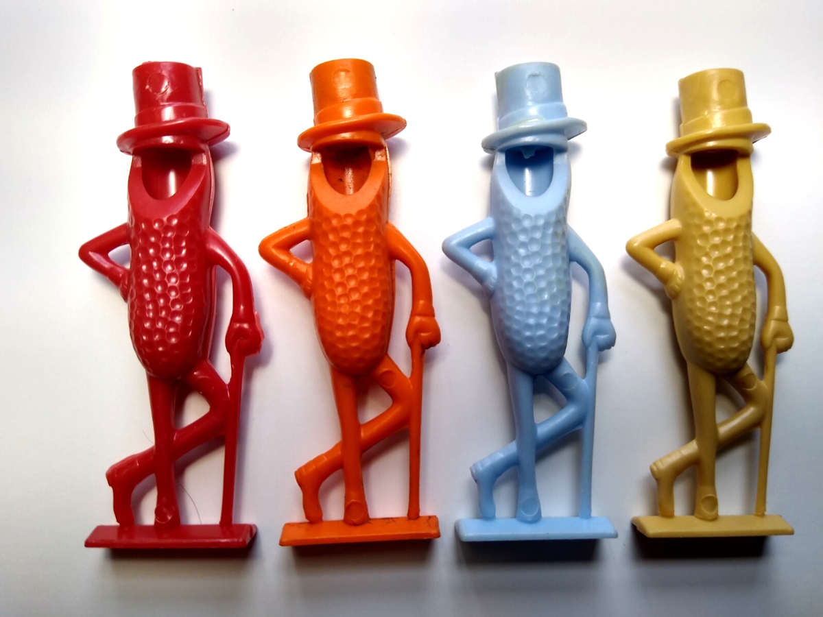 Mr. Peanut Planters Lot Of 5 Items Bendy Figure Red Orange Blue Tan Whistles