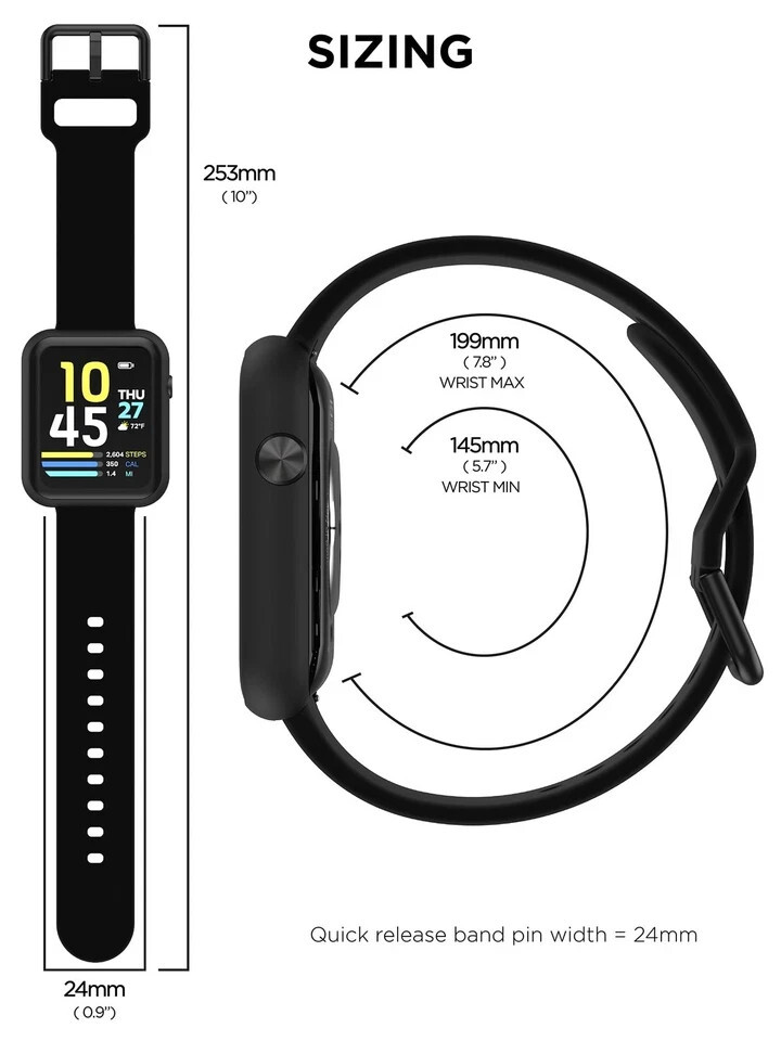 iTech Fusion 3 Unisex Smart Watch, Rectangular, Black Silicone Strap, 37 Sports