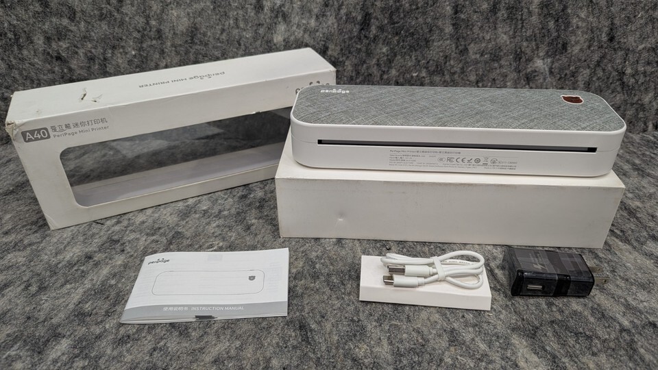 PeriPage Mini A40 ITP01 Gray Rechargeable 203DPI Mobile Printer + AdapterNew