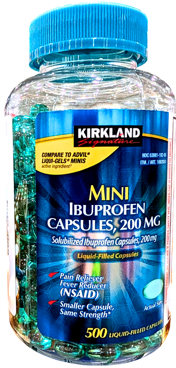 Kirland Signature Mini Ibuprofen 200mg 500 Count Softgel EXP 02/2027
