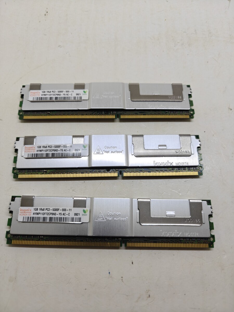 Hynix 1GB 1Rx8 PC2-5300F Server Memory with Heat Spreaders Lot Of 3